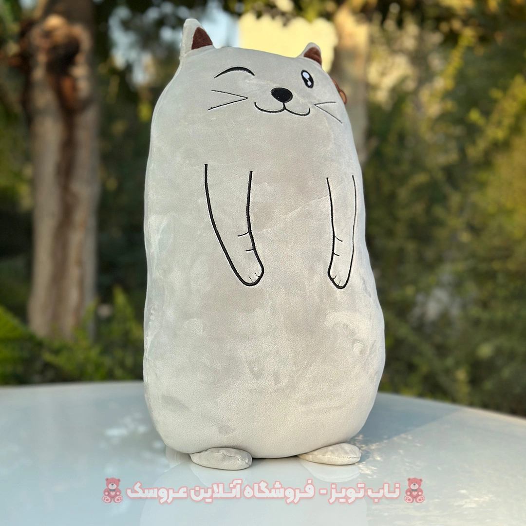 رنگبندی و طراحی نیز یکی از فاکتورهای مهم در انتخاب عروسک کوسن گربه است. کوسن فروشگاه ناب تویز به رنگ طوسی است که به راحتی میتوانید آن را با هر رنگی ست کنید.