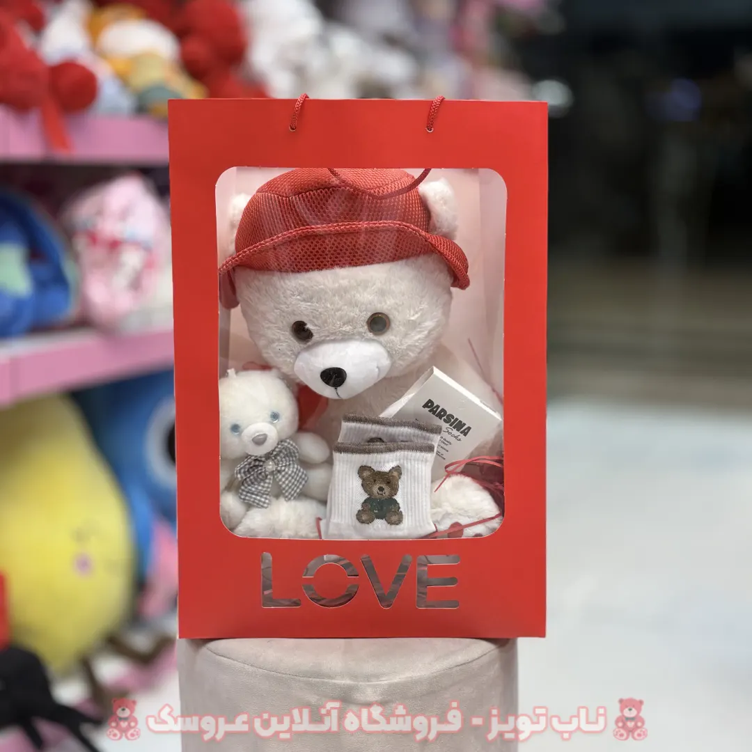 پک ولنتاین خرس سفید کلاه دار اقتصادیپک ولنتاین خرس کلاه دار اقتصادی